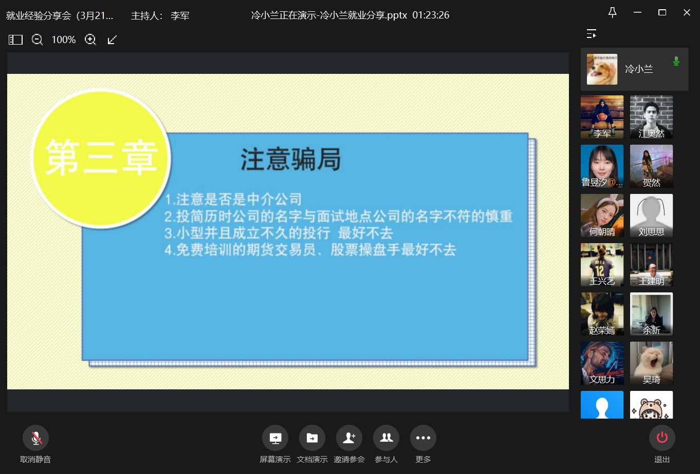 本次就业分享交流会为同学们拨开迷雾,使同学们有了更明确的方向,也提升了敢于尝试的勇气。祝愿同学们都能实现自己的目标,获得满意的工作。