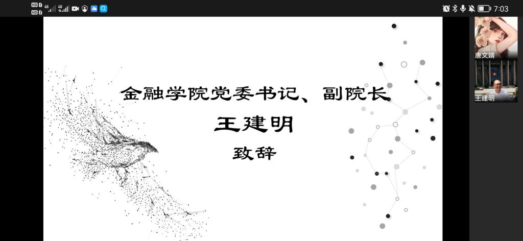 17金融一班郑垚(云南师范大学金融专硕)主要分享考研的调剂经验。从调剂流程适用范围、系统填报、面试内容三方面介绍。她重点提到调剂系统的使用,建议留一个志愿,多注意关注系统是否收到复试通知,并及时回复。她表示,在面试时不用太担心英语,流畅回答问题即可,可以适当放慢语速给自己思考的时间,遇到突发问题也不必慌张,需沉着冷静应对就好。调剂流程中要自信,尽量发挥出自己最好的一面,同时也要放平心态,相信无论身处何校,都能让同学们取得收获。