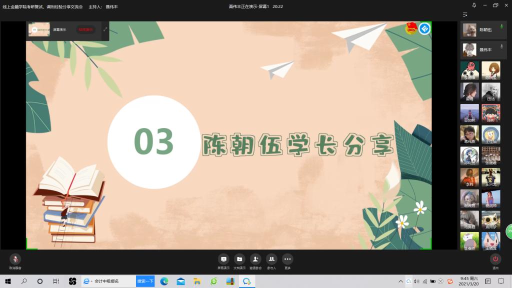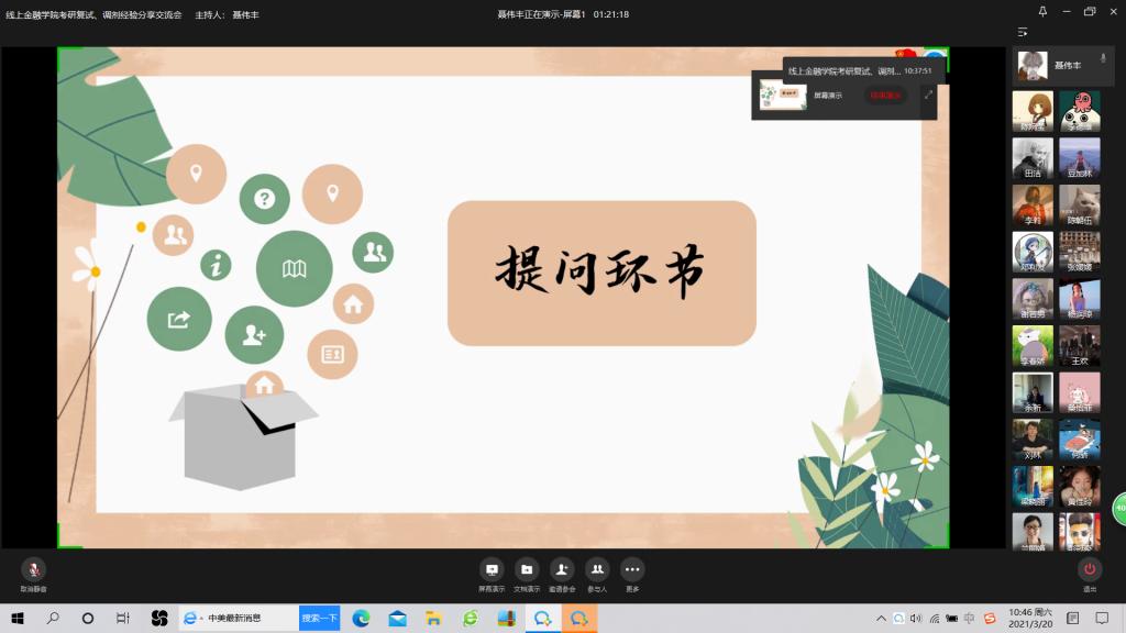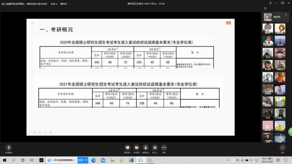 3月20日上午9:30,天游ty8线路1线路2检测中心成功举行了“天游ty8线路1线路2检测中心考研复试、调剂经验分享”线上交流会。此次交流会邀请了2020届考研成功的五位校友:杨润琼、陈朝伍、曾雪萍、刘柯岚、谢若男来分享关于复试和调剂成功的相关经验,为同学们答疑解惑。天游ty8线路1线路2检测中心党委书记、副院长王建明,党委副书记、纪委书记余新出席了本次交流会。