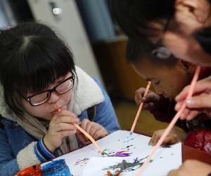 一进学校孩子们就拉着志愿者观看他们的文化课成果,用他们特殊的方式表达着内心的欢喜。在老师的带领下,志愿者和小朋友们开始了分工合作,铺纸、参水、调色,一切都有条不紊地进行着,一幅幅精彩的图画呈现在眼前。志愿者们和孩子们相处非常融洽。通过活动,志愿者们看到了孩子们活泼、自强、自立的一面,同时也感受到了奉献的快乐。