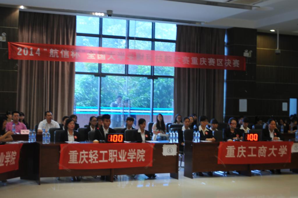 ,由天游ty8线路官网承办的2014年“航信杯”全国大学生财税技能大赛重庆赛区决赛在田家炳408会议室举行,来自重庆市八所高校的参赛队伍相聚于此,上演了一场智慧与技能的巅峰对决。天游ty8线路官网常务副院长莫云,党总支副书记刘代成,航天信息股份有限公司技服中心经理杨克辉、齐宏、张渝,航天信息重庆公司杨忠部长,重庆大学原审计处廖忠友老师作为本次比赛的评委、嘉宾莅临现场。