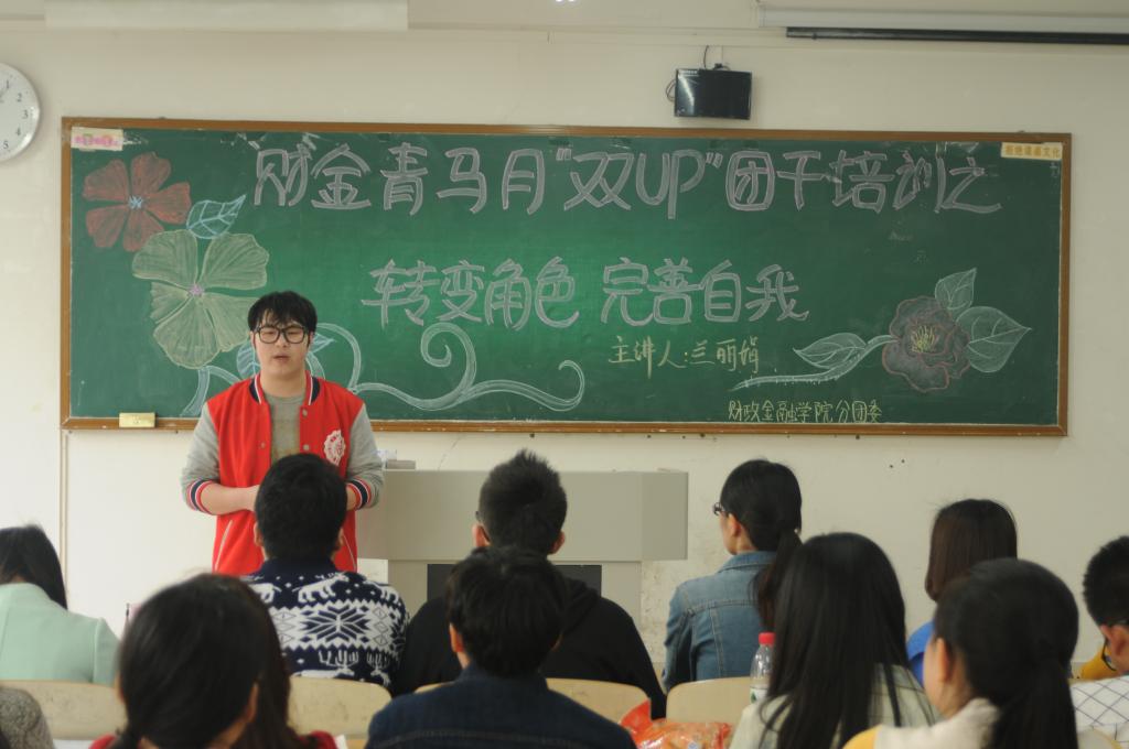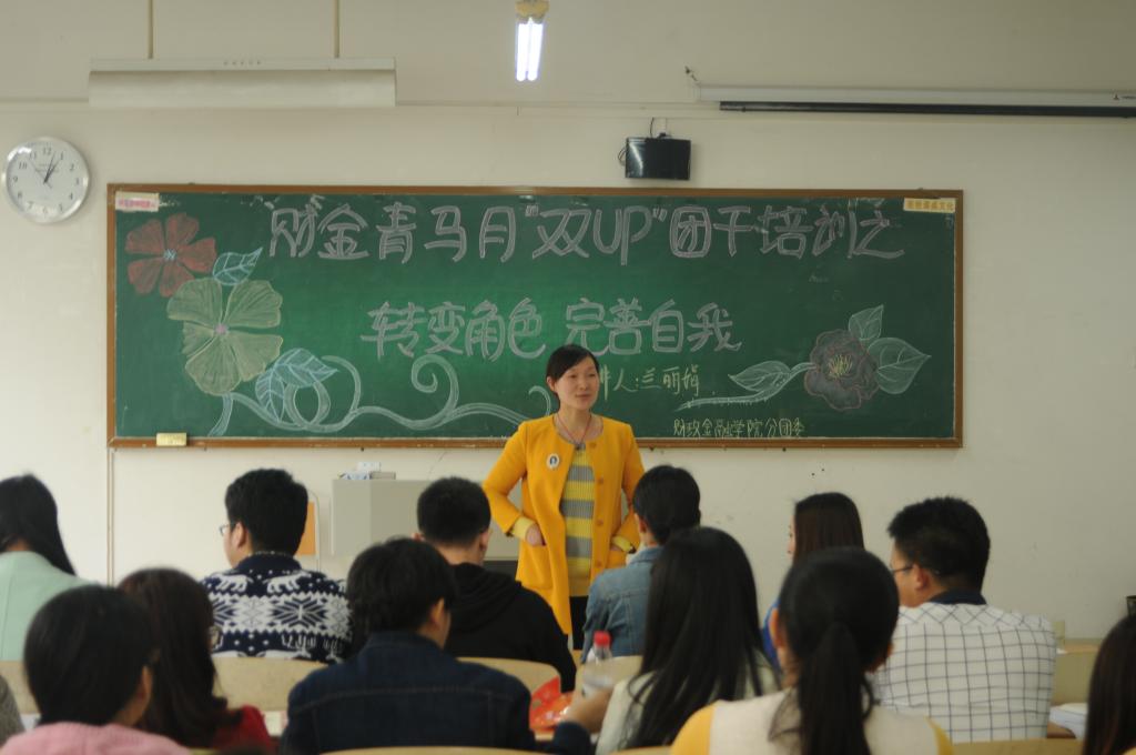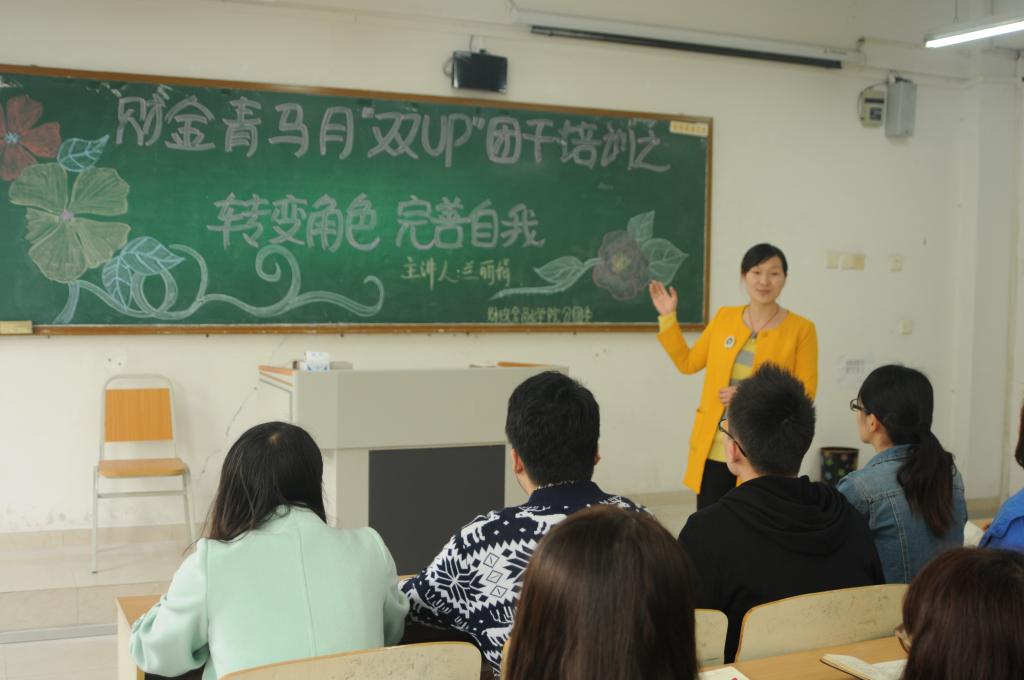 ,财政天游ty8线路1线路2检测中心于07212教室举行了以“转变角色,完善自我”为主题的财金青马月之“双UP”团干培训。此次培训会由分团委书记兰丽娟老师召开,财金学生会各部门部长参加培训。