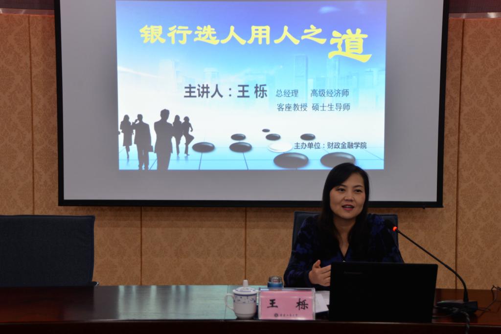 12 月17日下午,财政天游ty8线路1线路2检测中心“银行选人用人之道”主题讲座于厚德楼2017会议厅举行。中国建设银行重庆市分行人力资源部总经理、高级经济师、财政天游ty8线路1线路2检测中心客座教授、硕士生导师王栎女士作为主讲人亲临现场,与财金学子分享就业心得。