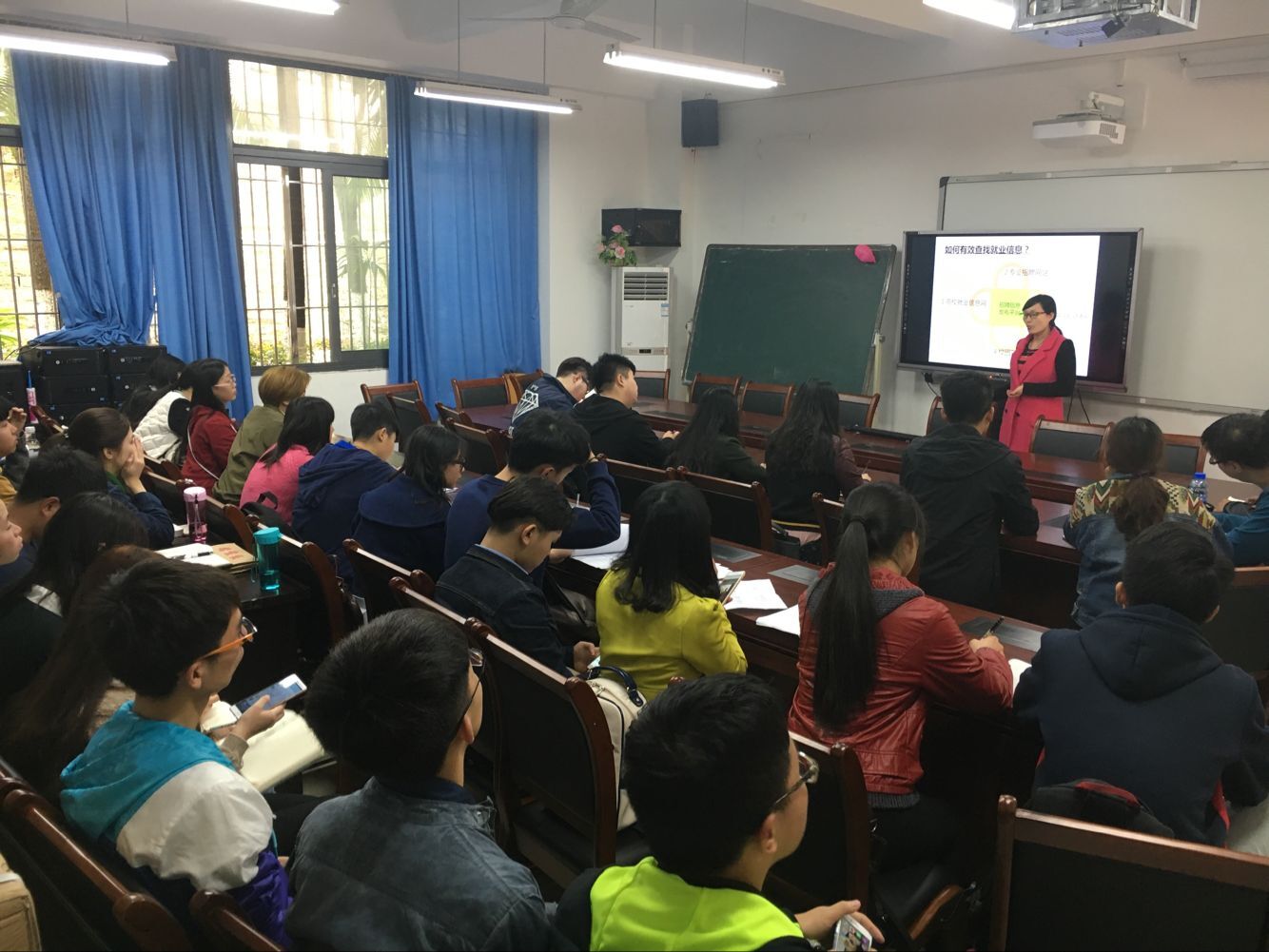 培训伊始,兰丽娟老师从为学生发展的角度,娓娓讲述了就业的相关知识。首先老师就高校就业信息网、应届生求职网、大街网、中华英才网、汇博人才网等就业网站做了简单分析,并详细介绍了相关网站的具体情况,加深了同学们对求职网站的认识。不仅如此,为了使同学们早日与社会接轨,兰丽娟老师还向大家介绍推荐了适合财金学院学子实习的单位,如兴业银行等。条条大路通罗马,兰丽娟老师也为想考公务员的同学们讲述了一些有关考试的一些具体事项,并推荐了“华图”、“中公”两家培训机构供同学们选择。在同学们的深思中。她又向大家介绍了选调生考试,党员公务员以及事业单位考试的相关情况。为了让同学们更好的适应工作情况,兰丽娟老师着重强调了在同学们收到招聘信息之后,不能太过急躁,应当对企业进行一番深入了解,将职位与自身的实际情况相匹配之后,再做决定。