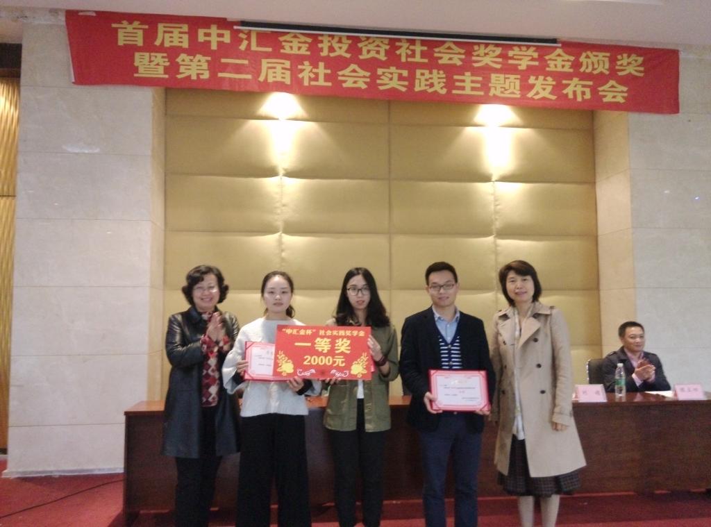 为培养行业后备人才,促进高校将竞赛与学科建设及学生学业和就业需求挂钩,进一步深化校企合作,达到以赛促教,以赛促学的目的。财金学院与中汇金于2015年启动了首届“中汇金”杯大学生社会实践调研活动。参与此次社会实践活动的学生,在中汇金公司专业人士的带领和财金学院专业老师的指导下不断提高自己的社会实践能力和专业技能。财金学院刘书记在致辞中对重庆中汇金投资管理有限公司关心学院学生发展表示感谢,并希望双方能继续加深合作,中汇金投资管理有限公司刘总则肯定了财金学子在社会实践活动中的优异表现。随后,双方为获得一等奖、二等奖和优秀奖的学生颁发荣誉证书和奖学。