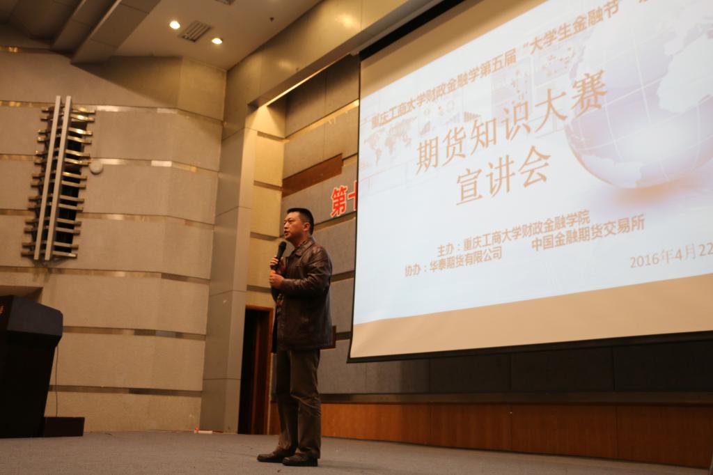 4月22日下午,财政天游ty8线路1线路2检测中心期货知识竞赛暨第四届“中金所杯”全国大学生金融及衍生品知识竞赛宣讲会于博智楼7100开讲。天游8线路检测中心财政天游ty8线路1线路2检测中心常务副院长莫云、党总支副书记刘代成、华泰期货华中区副总周明、言成汇资产管理有限公司投资总监沈发鹏、华泰期货代表陆彦以及财金学院学团办老师受邀出席宣讲会。
