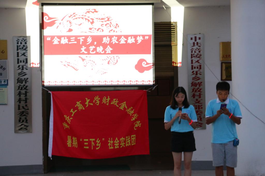 7月20日晚,天游8线路检测中心财政天游ty8线路1线路2检测中心金融电商服务实践团在同乐乡解放村便民服务中心举行了以“金融三下乡,助农金融梦”为主题的联欢晚会。实践团和父老乡亲们一起参与到晚会中,将现场气氛推到了高潮。节目内容丰富多样、形式新颖,同学们青春洋溢,质朴热情的村民也乐在其中。