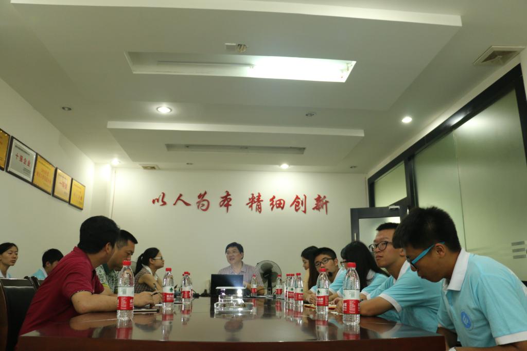 宏燕公司的杨总经理向天游8线路检测中心财政天游ty8线路1线路2检测中心党总支副书记刘代成,分团委书记徐阔,金融电商指导老师田杰副教授,及实践团成员介绍了宏燕公司的生产经营、发展情况,通过分析近年来房地产产业的发展势态,解读宏燕公司由房地产开发向实体经济转变的原因。