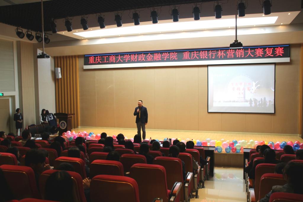 大赛伊始,刘代成副书记发表讲话,表达了对重庆银行的感谢和对参赛同学的期许并预祝本次活动取得圆满成功。比赛第一轮,15只队伍轮流进行PPT讲演,提出对于本次赛事四个项目的营销方案,并针对相应的客户群体进行逐个分析,令评委老师和现场观众耳目一新。答辩环节,参赛人员更是从容应对,赢得了评委老师的肯定与认同。