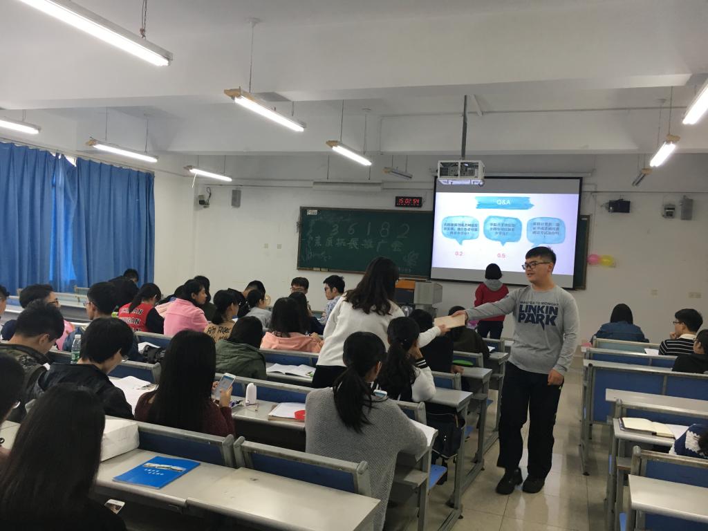 活动由内容讲解和问答互动两个部分组成。庞世强主席为本次活动做开场词,告诉大家应正确地认识和运用“36182”素质拓展工程,不断提高自己的综合素质。紧接着,何凯萌部长和余柔芳部长向大家详细地介绍了“36182”的内涵,强调了素拓分对每一个大学生的重要性,更告诉了大家如何获得素拓分。互动环节,同学们在参与游戏和赢得奖品的同时,也对“36182”有了更为深刻的认识。最后陈曦曦部长对本次活动进行了简单总结。