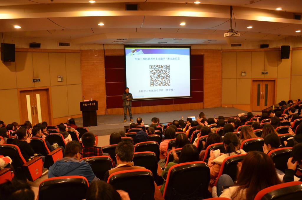 11月9日晚上七点,由财政天游ty8线路1线路2检测中心分团委主办的“金融就业前景与路径”讲座于在我校南岸校区博智楼7200报告厅顺利举行。本次讲座特邀招商银行重庆分行副总熊登峰老师作为主讲人,学院常务副院长莫云、学生第一党支部书记文理莅临现场。