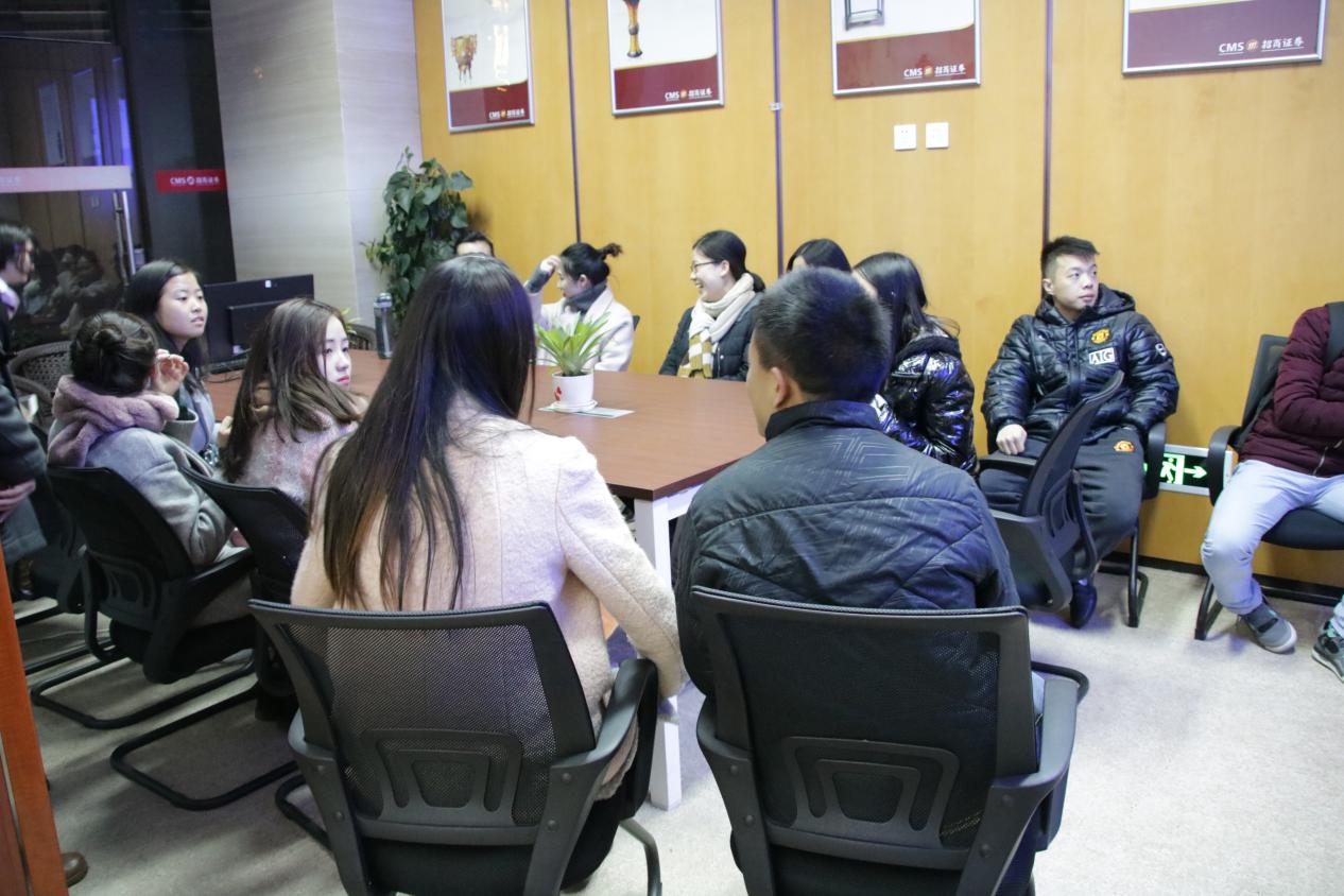 2016年11月28日下午,天游8线路检测中心2016级金融硕士学生在任课老师骆志芳教授的带领下,走进了位于南岸区五公里的招商证券公司,开展金融机构与金融市场课程移动课堂。