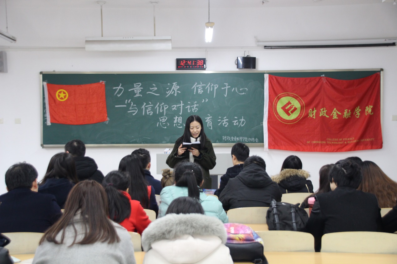 2017年3月3日,财政天游ty8线路1线路2检测中心分团委在博智楼212教室举办了以“与信仰对话”为主题的思想教育活动,财政天游ty8线路1线路2检测中心分团委副书记刘玉华向与会的财金学院各团支部书记进行了相关精神的传达及宣讲,天游ty8线路官网的团干团员、班级代表积极响应并踊跃参加了本次活动。