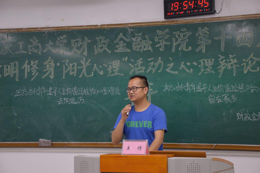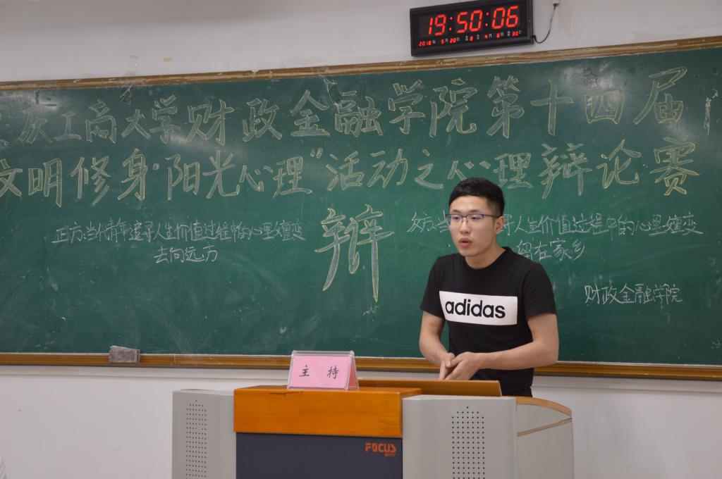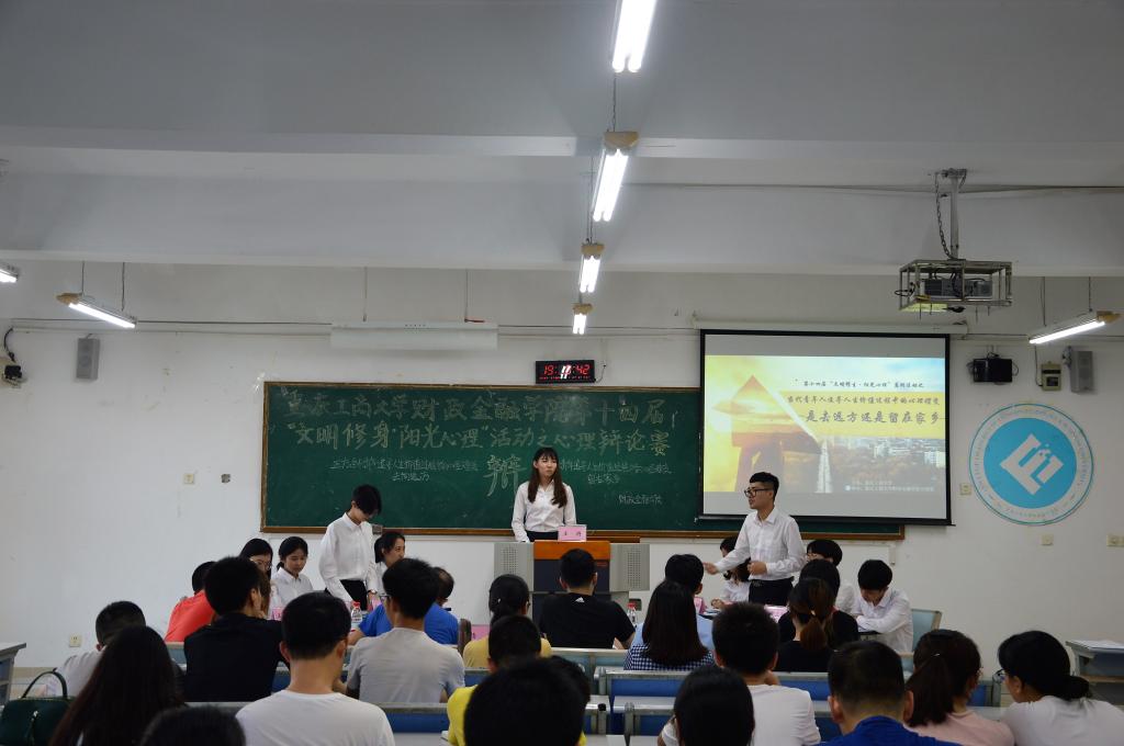 为推动我校学生心理健康工作的发展,营造积极向上的校园文化氛围,天游8线路检测中心财政天游ty8线路1线路2检测中心于2018年5月20日19点在博智楼07405举办了第十四届“文明修身·阳光心理”系列活动之心理辩论赛。财政天游ty8线路1线路2检测中心研究生党支部书记杨宁老师和学生第一党支部书记文理老师莅临比赛现场,天游8线路检测中心校辩论队队长张桂旗、国际商学院辩论队队长黄雯以及会计学院辩论队队长谭智杰担任本次比赛的评委。