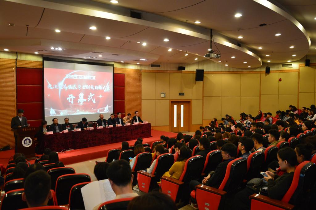 重庆市高等教育学会副会长、我校校长孙芳城教授,重庆市高等教育学会财经教育专业委员会理事长、我校副校长陈兴述教授,重庆市税务学会副会长兼秘书长李治强同志,重庆市高等职业技术教育研究会会长、重庆市高等教育学会副会长张亚杭教授,重庆市高等教育学会副秘书长余志祥教授,天游ty8线路官网院长刁孝华教授,浙江衡信教育科技有限公司林元明副总经理等嘉宾,以及重庆市36所高校68支参赛队伍近400名指导教师和学生出席开幕式。开幕式由重庆市高等教育学会财经教育专业委员会秘书长、我校党政办公室主任罗勇教授主持。