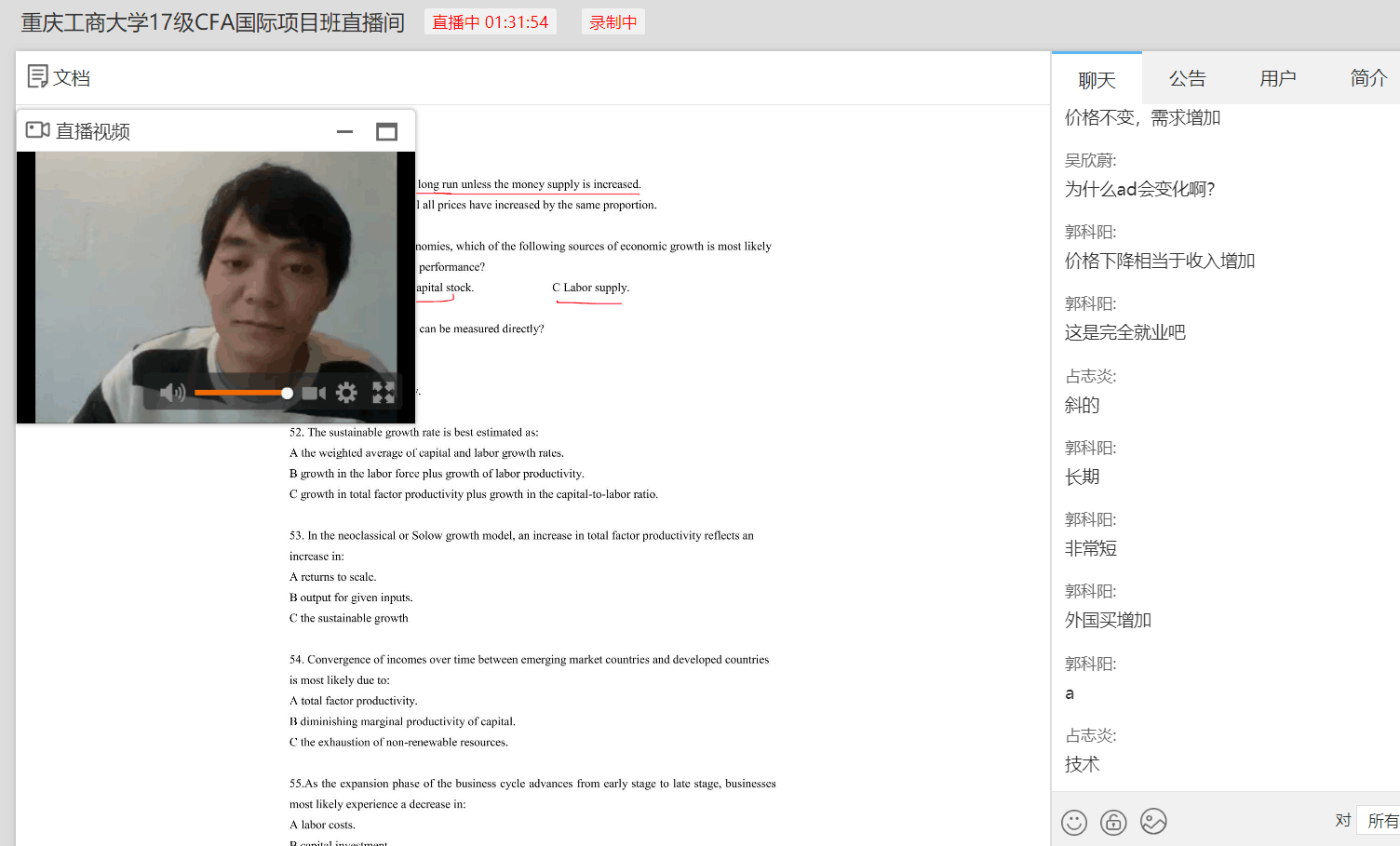 为加强疫情防控,保证学院CFA教学进度和教学质量,实现停课不停教、停课不停学的工作要求,学院和融仕国际教育研究决定在天游8线路检测中心允许学生返校之前,利用云直播平台开设2019-2020-第二学期CFA直播课程,天游ty8线路官网CFA各年级于3月2日已正式开展网络直播教学。