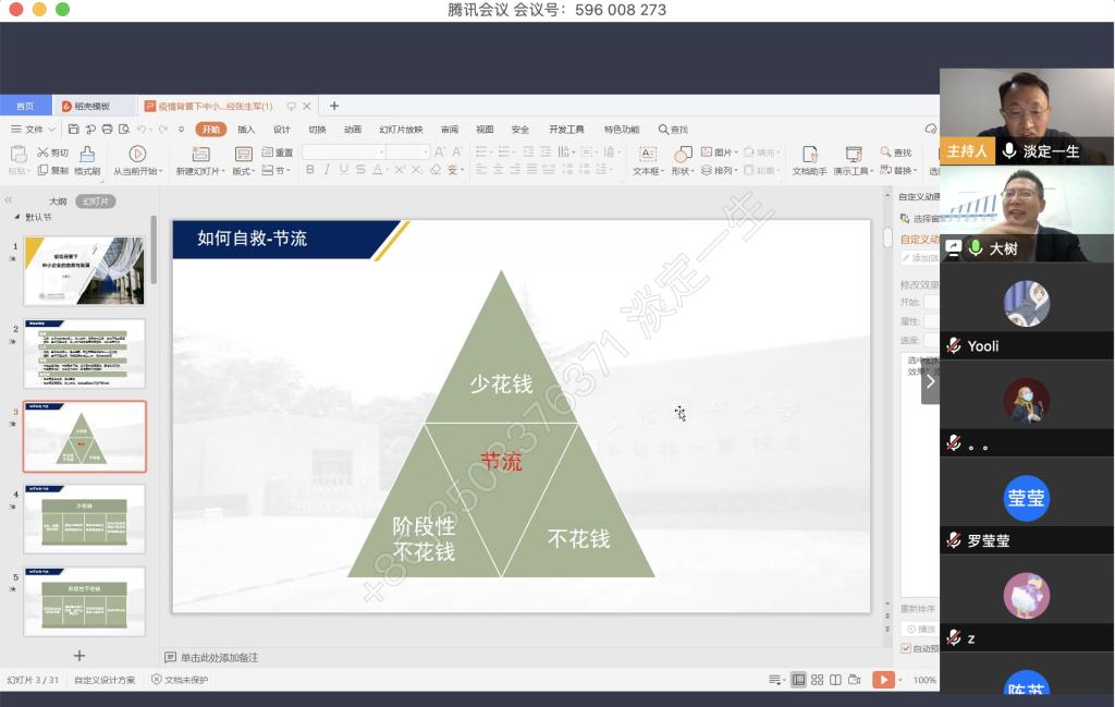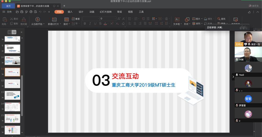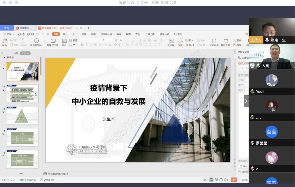4月9日晚上,我校税务硕士教育中心通过腾讯会议成功举办了本年度第一次南山税务沙龙——疫情背景下中小企业的自救与发展。本次沙龙由天游8线路检测中心尚可文教授主持,特邀请迅驰车业江苏有限公司副总裁、上海财经大学硕士生导师张生军博士主讲,我校2019级税务硕士研究生参加了沙龙。
