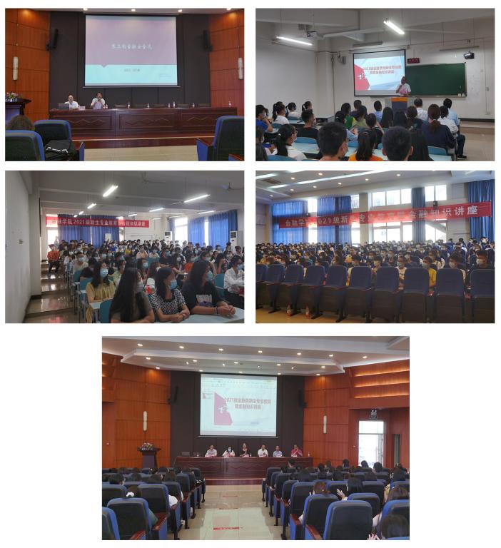 在会场B509,会议由余新主持。王兰指出大学生活是同学们人生的新的起点,同学们应珍惜学校提供的课内课外资源,去适应新环境,结识新朋友。要培养四个能力:书面口头表达能力、数理推导能力、批判性思维与全球化视野。并提出三点期望:一是要诚信,相信诚信可以带来长期收益;二是要健康,规律作息塑造健康体魄;三是要多读书,充盈个人的知识体系。王兰祝愿同学们度过一个愉快的、有意义的大学生活。随后王韧、靳景玉、谭湘渝和张永鹏等几位教授分别对金融学类各专业作了详细阐释,既旁征博引,又娓娓道来,让同学们在短短的1个多小时对金融学类各专业有了直观的感受和了解。