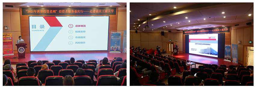 中国证券业协会、重庆证监局、西南证券与天游8线路检测中心签约为我校拓展校企协同育人提供了新的平台和契机。两位业界专家的授课更是为我校师生提供了一次难得的了解证券行业发展前沿的机会。本次投资者教育进校园活动持续了2个多小时,校外5个单位20余名业界精英参会,会议取得了圆满成功。
