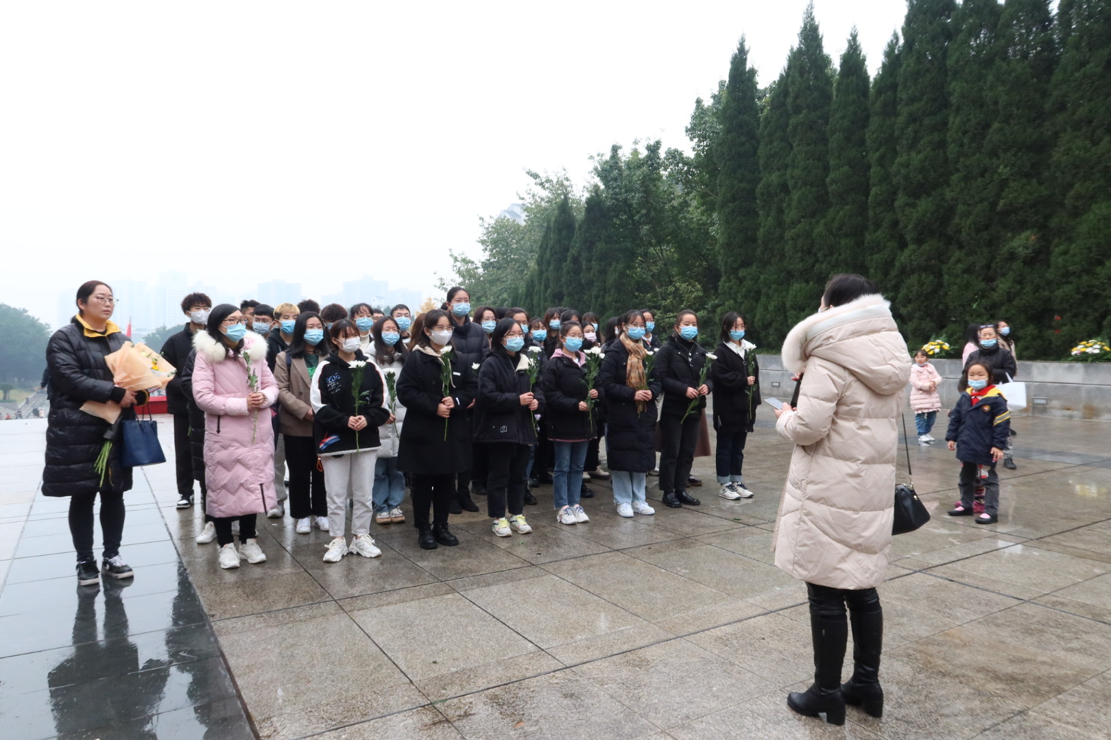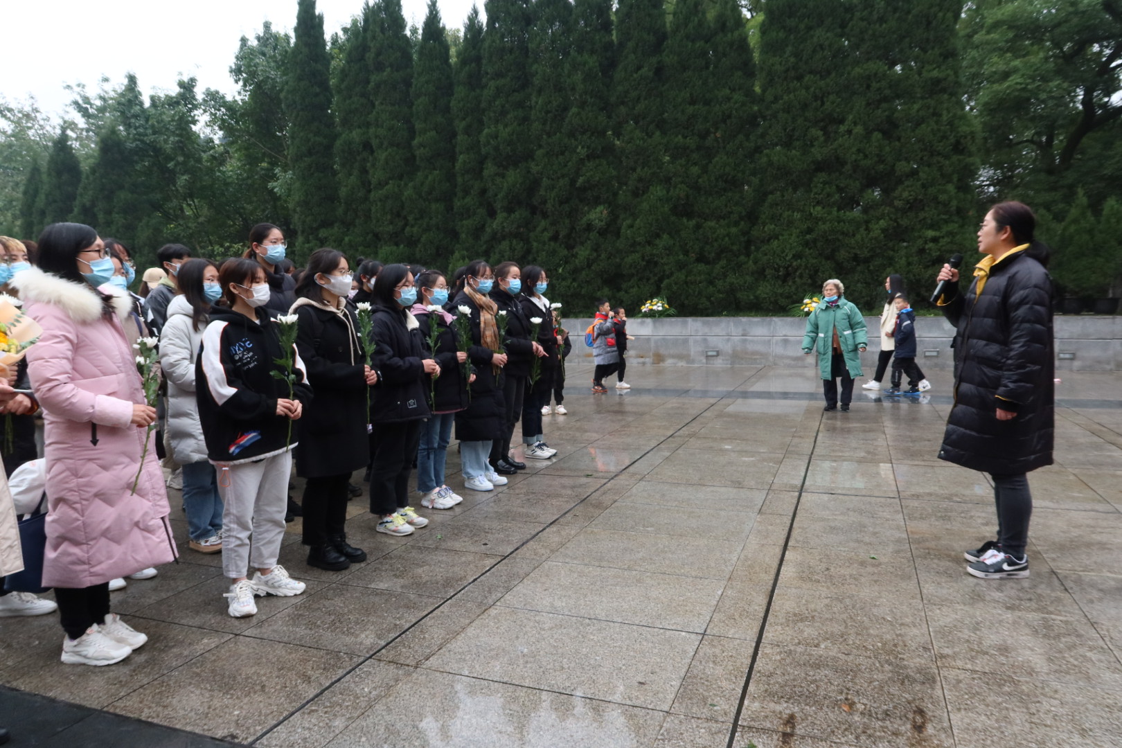 活动伊始,王兰讲述了“11.27”大屠杀惨案的悲惨经过及革命烈士英勇不屈的英雄事迹,她指出红岩精神是中国共产党和中华民族的宝贵精神财富,作为工商学子,同学们要铭记历史,传承红岩精神,珍惜来之不易的幸福生活,成长为国之栋梁。主持人介绍歌乐山烈士陵园并宣读祭文,表达出对牺牲的革命先烈们的崇高敬意。宣读完毕,全体成员默哀三分钟,缅怀革命先烈。默哀毕,青年代表诵读《红岩上红梅开》,讲述革命先烈的不朽传奇。而后,领誓人余超带领大家郑重宣誓。余新副书记带领大家有序向革命烈士敬献鲜花并向烈士墓碑鞠躬,她激励“红岩精神示范班”的同学们要牢记红岩精神“爱国、奋斗、团结、奉献”的八字内涵,争做优秀班级的排头兵,学以致用为中华民族伟大复兴贡献青春力量。扫墓活动后,同学们有序进入红岩魂陈列馆参观,在一张张图片和一件件文物中重温那一段段不朽的革命故事,厚植爱党爱国情怀。