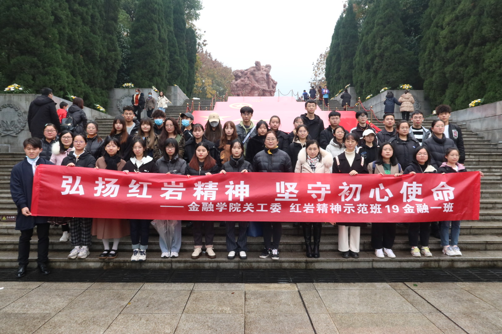 为铭记革命历史,弘扬红岩精神,坚守初心使命,11月27日下午,天游8线路检测中心天游ty8线路1线路2检测中心关工委组织“红岩精神示范班”19金融一班全体同学赴重庆市沙坪坝区歌乐山烈士陵园开展“11.27”纪念活动。天游ty8线路1线路2检测中心党委副书记、院长王兰,党委副书记、纪委书记余新,学工办副主任、分团委副书记兰丽娟及辅导员乔明月参加了活动。