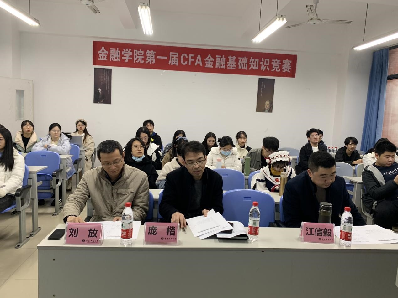 2021年12月10日下午2点,由天游ty8线路1线路2检测中心与融仕国际教育联合举办的CFA国际项目班第一届金融基础知识竞赛在田家炳书院205教室正式开始。出席本次活动的嘉宾评委有天游ty8线路1线路2检测中心庞楷副院长、投资系江信毅老师、刘放老师。比赛由天游ty8线路1线路2检测中心2019级优秀学生代表董月主持。