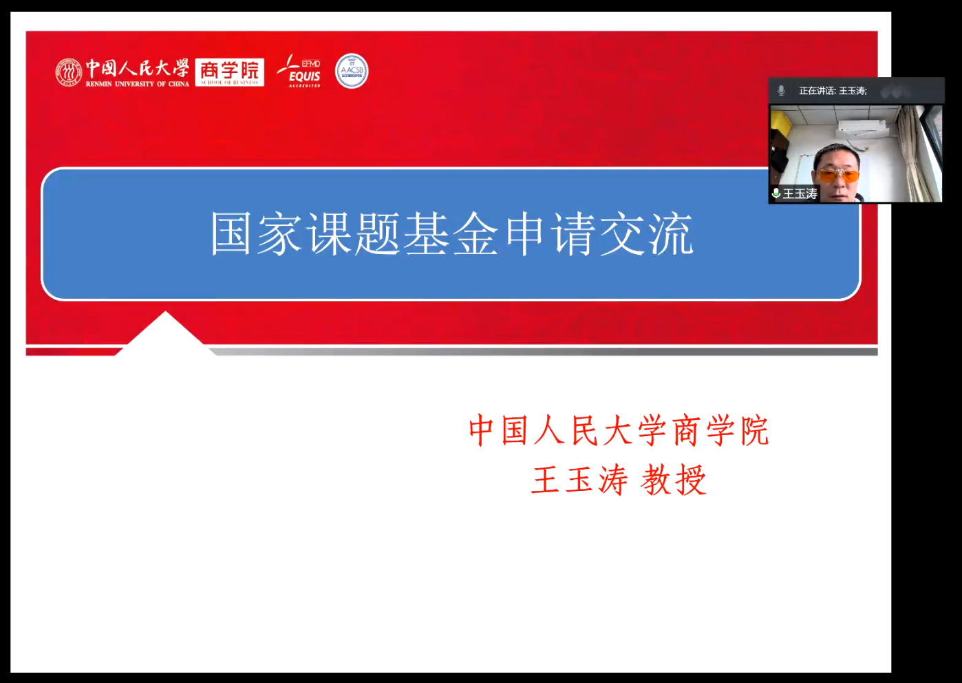 为推动2022年度国家社科基金项目申报工作的顺利进行,进一步提高项目申报质量,根据工作安排,2022年2月12日,天游ty8线路1线路2检测中心举行2022年度国家社科基金项目线上专家论证会,中国人民大学商学院王玉涛教授受邀到会指导,学院拟参与2022年国家社科基金项目申报的20余名教师参加了论证会。会议由副院长王韧主持。