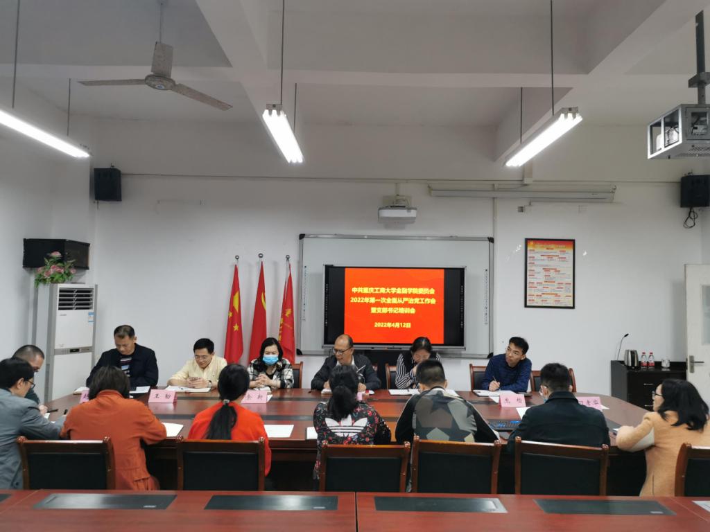 2022年4月12日上午,天游ty8线路1线路2检测中心党委在田家炳书院317会议室召开本年度第一次全面从严治党工作会暨党支部书记培训会,学院党委书记、副书记、党委委员、专职组织员、综合办主任、学团办主任及所属各支部书记等17人参加了会议,会议由学院党委书记、副院长王建明主持。