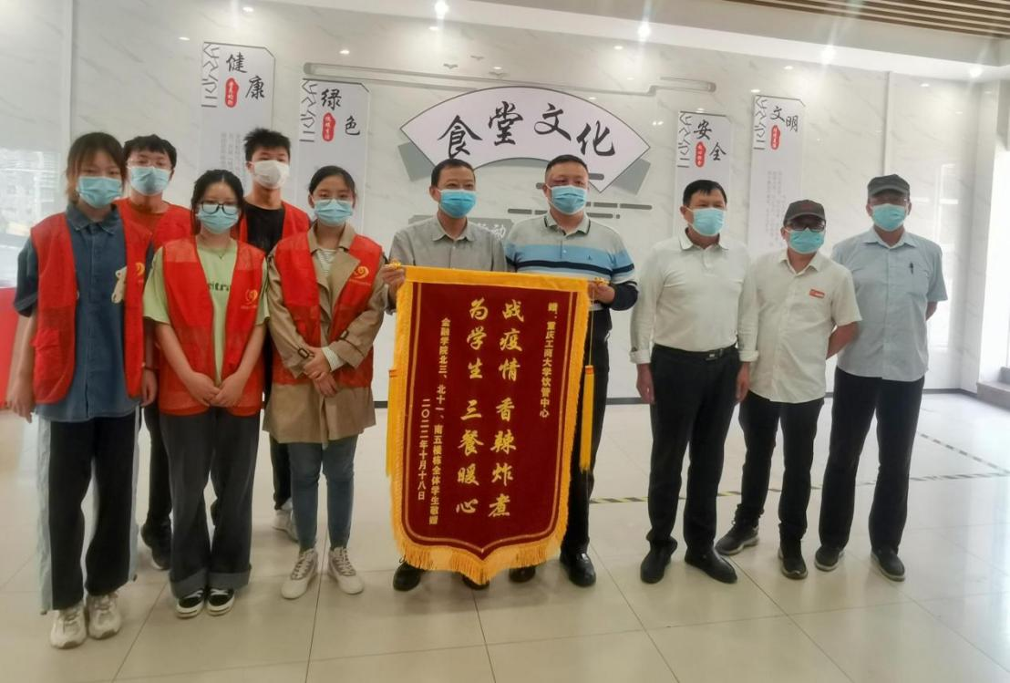 为感谢天游8线路检测中心饮管中心的全体食堂工作人员在疫情防控期间的辛勤付出,10月21日,天游ty8线路1线路2检测中心北三、北十一、南五楼管会代表三个楼栋的全体同学向饮管中心赠送锦旗,向全体食堂工作人员表达真挚的感谢,并致以崇高的敬意!