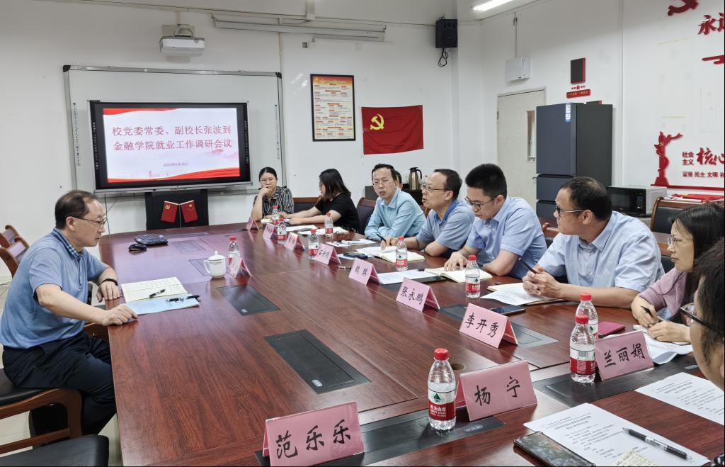 张波听取了学院目前就业工作的进展情况,分析了就业工作的难点和下一步举措。张波指出,就业工作要系统谋划、整体布局、精准施策、全员参与,树立“就业育人”理念,持续为学生搭建各类就业交流平台,推动就业工作迈上新台阶,以就业工作实效贯彻落实主题教育要求。