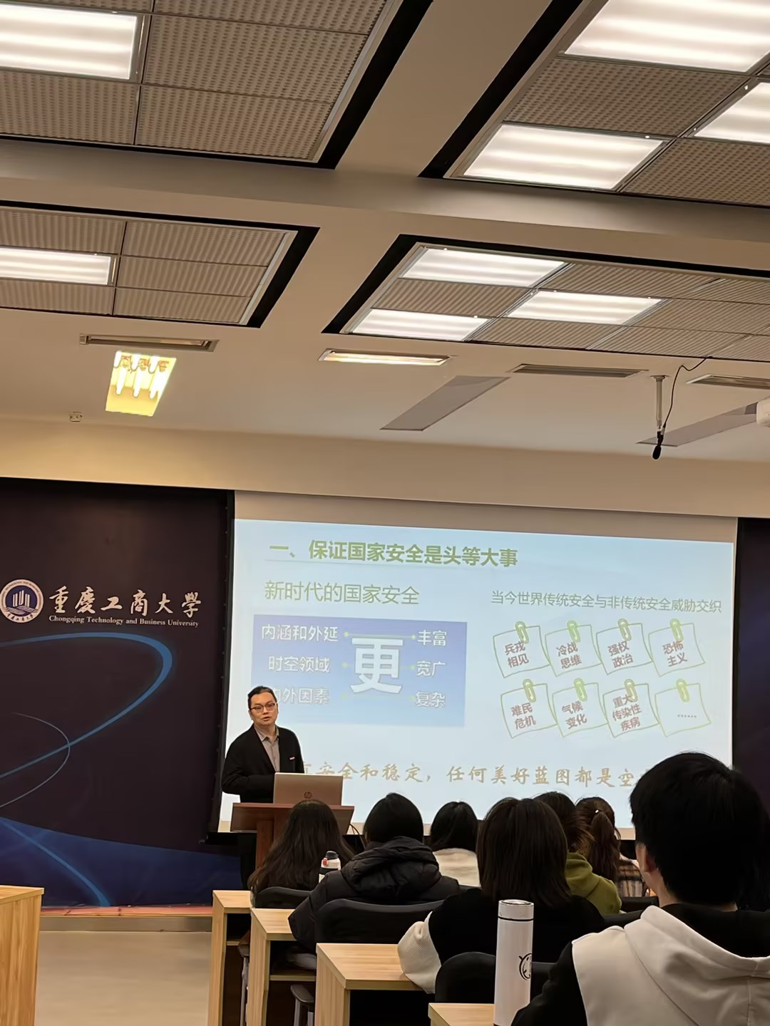 随着国际形势的快速变化和全球治理体系的调整,以新安全格局保障新发展格局,保证国家安全是头等大事,中国必须坚持总体国家安全观。2023年11月17日下午,温涛校长走进博智楼07108教室,为天游ty8线路1线路2检测中心2021级金融工程一、二班的同学讲授了《以新安全格局保障新发展格局》的思政课。