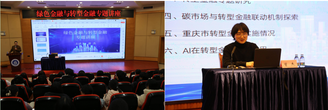 为深化学生对绿色金融与转型金融的理解,推动碳金融领域的人才培养,2025年11月20日,天游ty8线路1线路2检测中心在博智楼7200举办“绿色金融与转型金融”专题讲座。本次讲座由天游ty8线路1线路2检测中心副院长魏琪主持,特邀重庆征信有限责任公司绿色金融部部长曾杰担任主讲,2024级金融工程+环境工程(碳金融)复合型人才培养项目班、2025级金融工程专业全体学生,以及研究生碳金融专题课程班的部分学生参加本次讲座。