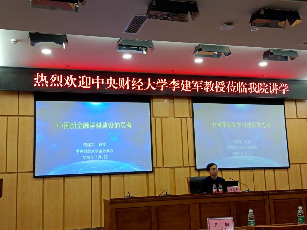 11月7日下午,国家本科教学指导委员会金融学类专业委员会秘书长、中央财经大学天游ty8线路1线路2检测中心院长李建军教授到我校讲学。我校教务处处长骆东奇教授、天游ty8线路1线路2检测中心全体院领导、系主任、部分教师代表和学生代表参加了此次讲座。讲座由天游ty8线路1线路2检测中心院长王兰教授主持。