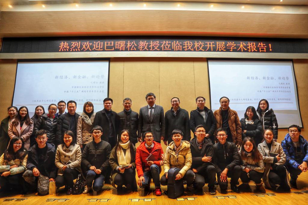 2017年12月21日下午2点,中国银行业协会首席经济学家巴曙松教授应邀来到天游8线路检测中心财政天游ty8线路1线路2检测中心学术报告厅50209给在校老师、研究生和本科生作了一场关于“新经济、新金融、新趋势”的学术报告。
