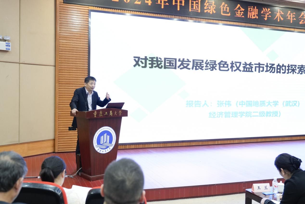 中国地质大学(武汉)张伟教授以《对我国发展绿色权益市场的探索》为题作主旨演讲。