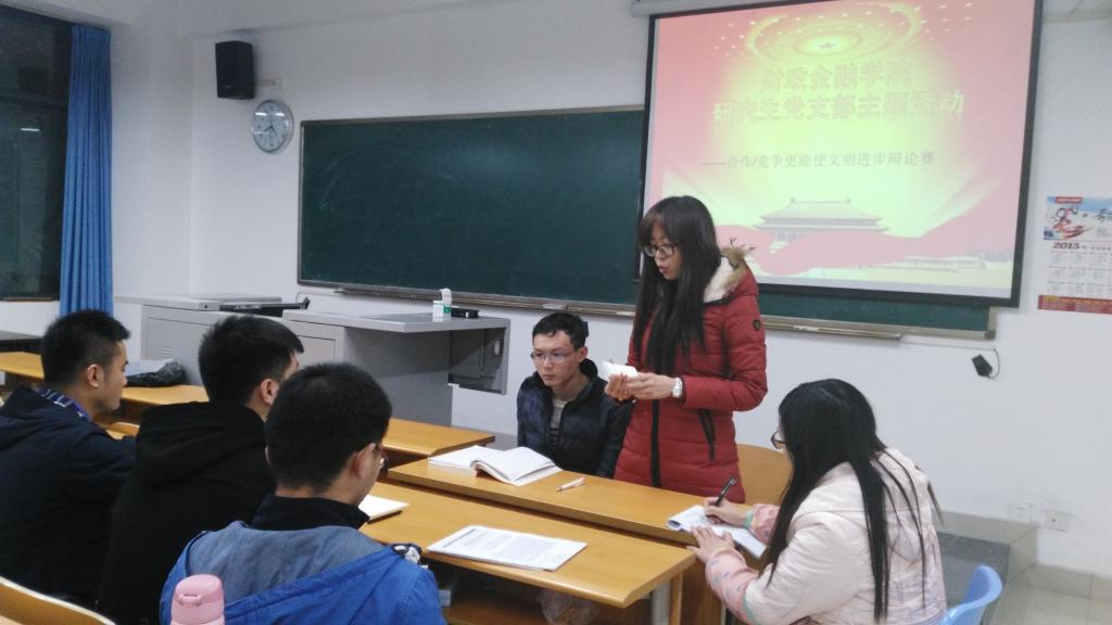 12月14日,财政天游ty8线路1线路2检测中心研究生党支部在田家炳书院311教室开展了题为“合作还是竞争更能使文明进步”的小型辩论赛。活动由党支部书记兰丽娟老师主持。