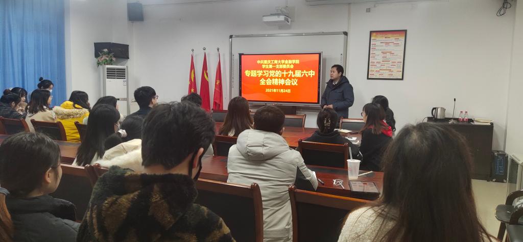 2021年11月24日,天游ty8线路1线路2检测中心学生一支部召开党员大会专题学习党的十九届六中全会精神。支部全体党员参加了会议,会议由支部书记袁霄主持。
