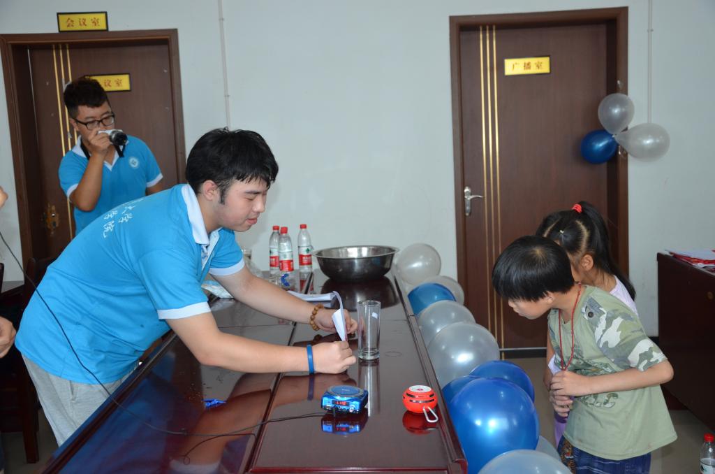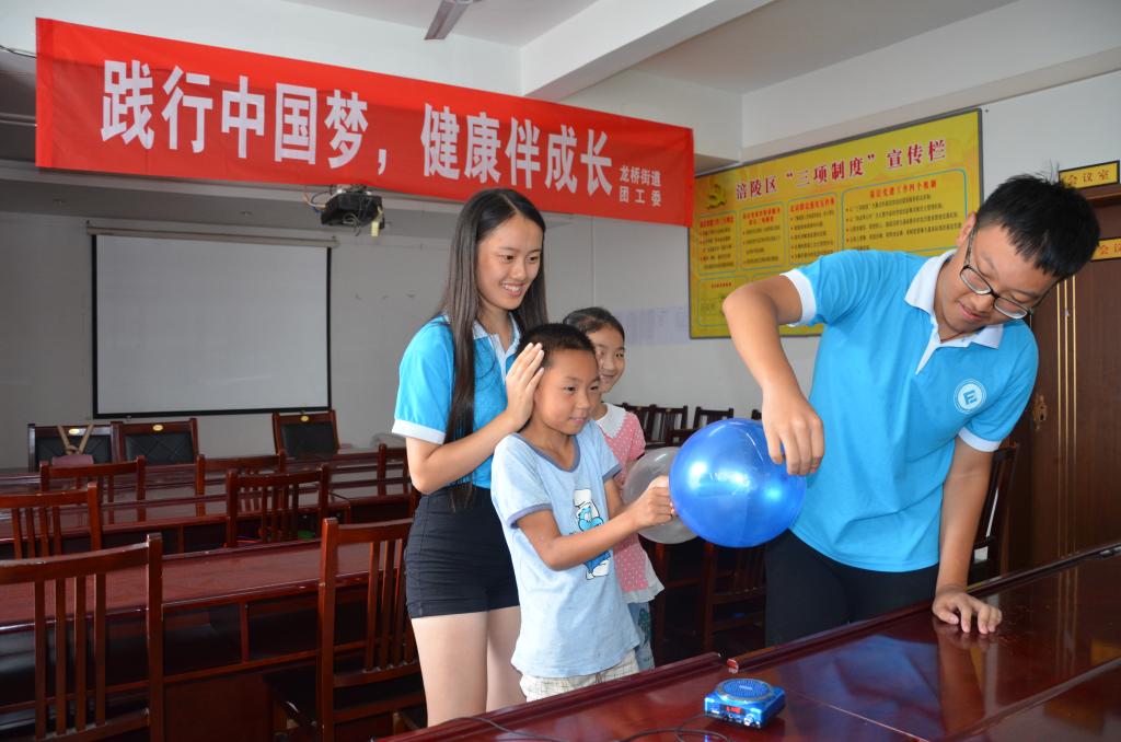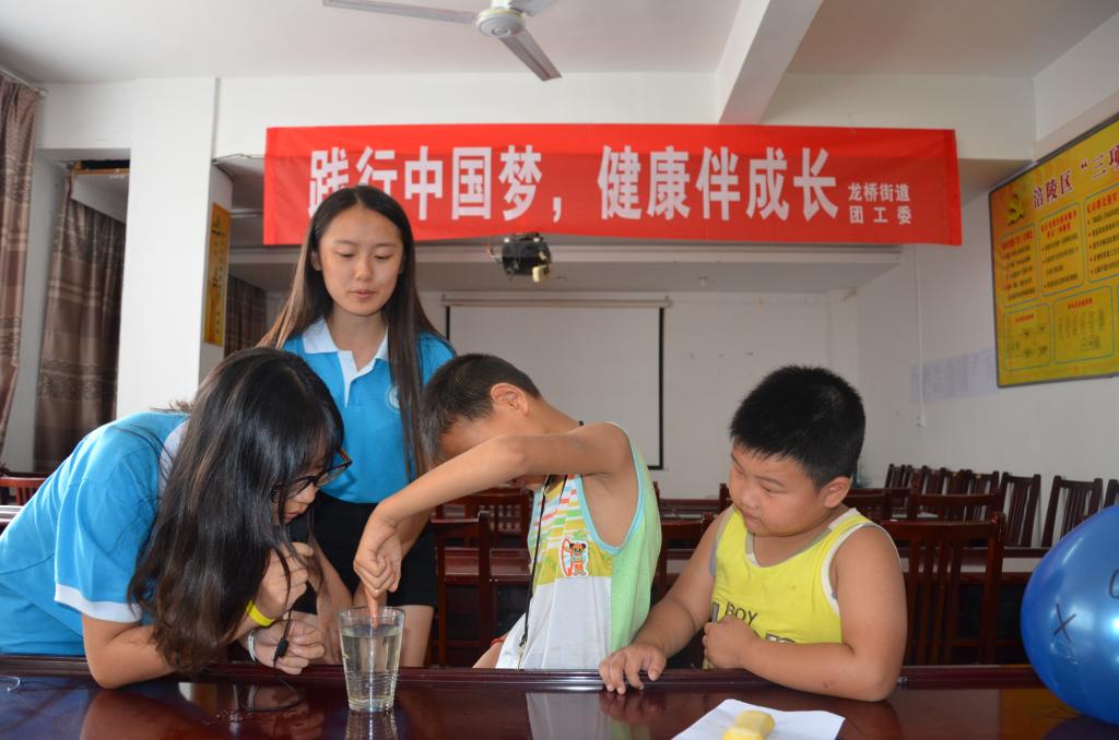 7月22日午后,载着雨后初晴,天游8线路检测中心财政天游ty8线路1线路2检测中心创新创业服务团来到涪陵区龙桥街道北拱社区与龙桥街道青年志愿者一起开展“见证奇迹”科普小课堂,为孩子们开启了探索之旅。