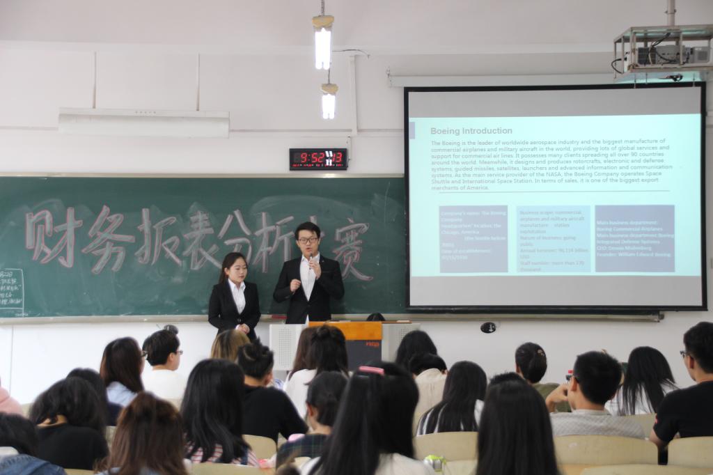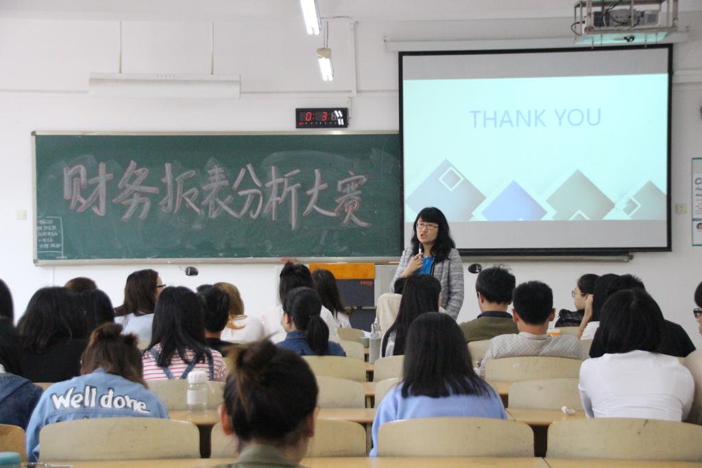 本次大赛首先由王兰副院长对本次大赛致了开幕词,并对选手们寄予殷切希望。随即主持人宣布比赛规则,本次财务报表大赛是分组陈述,2015级CFA的同学们一共被分为了8个小组,并通过了抽签决定比赛顺序,各组成员通过PPT向评委老师展示分析成果,陈述时间为15分钟,陈述后有5分钟的评委点评并打分。