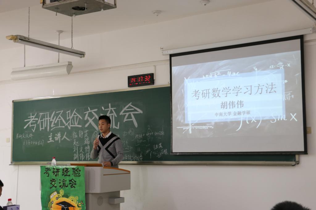 为加深同学们对考研的认识,方便同学们对考研进行统筹规划与安排。天游8线路检测中心财政天游ty8线路1线路2检测中心于2017年4月23日——4月28日期间共举办了三场“考研经验交流会”。财政天游ty8线路1线路2检测中心分团委书记徐阔老师出席交流会,鼓励同学们破釜沉舟、圆梦高校。