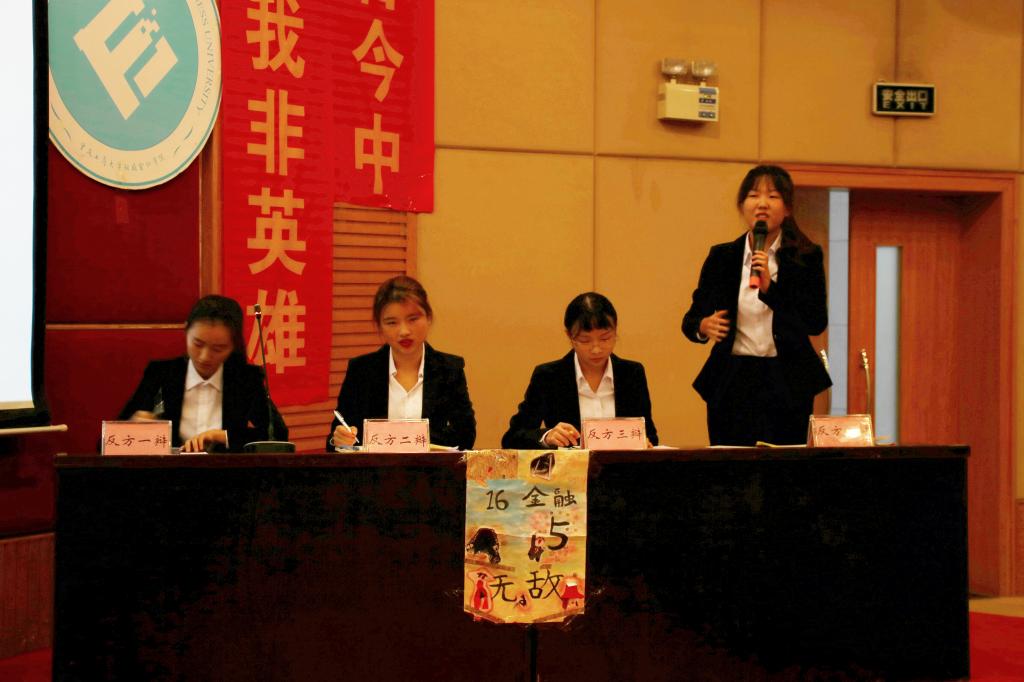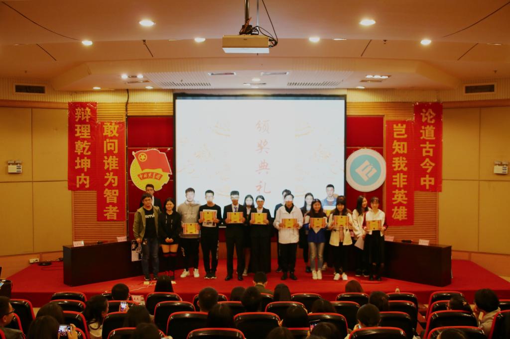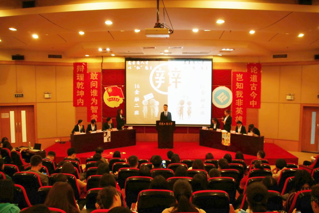 赛后评委离席打分,这时财金学院院辩论队也为现场观众带来了一场高质量的表演赛。最终,由主持人宣布,来自16金融二班的正方辩论队获得优胜,16金融五班的四辩杨新畅同学被评为最佳辩手。随着最后一场比赛的结束,第十六届“财金杯”辩论赛也圆满落幕。