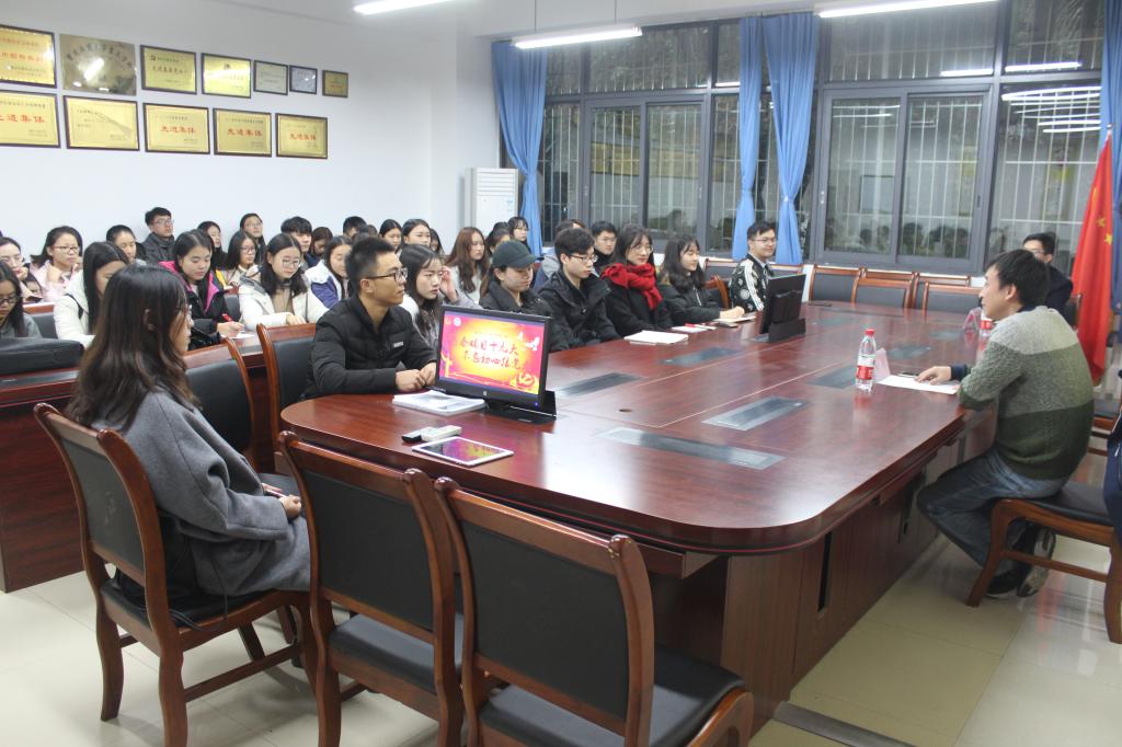 12月8日下午,天游8线路检测中心财政天游ty8线路1线路2检测中心在田家炳313会议室召开了“财金青马月”系列活动之团干培训,财金学院党委副书记黄谦书记、财金学院分团委书记徐阔老师出席了本次培训,财金学院分团委学生会主席及部长参加了本次会议,共同学习十九大精神。