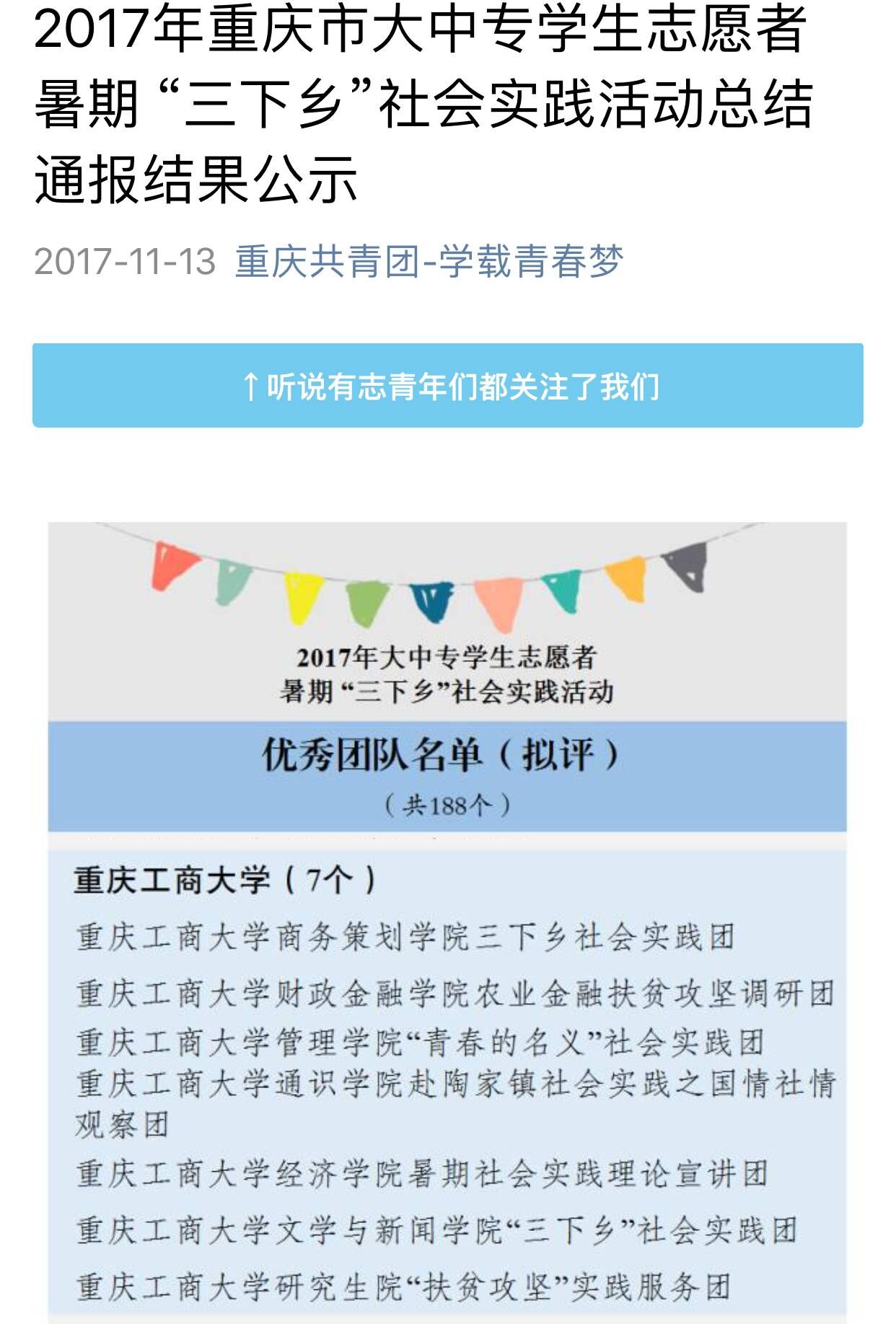 此次暑期三下乡,财政天游ty8线路1线路2检测中心发挥专业优势,把握时代主脉,组织了农业金融扶贫攻坚调研团,深入涪陵增福乡实地考察扶贫情况,点面结合开展多层次金融知识扶贫服务宣讲,用专业的知识和新的理念助力科技农业新发展。该团队在共青团中央网络影视中心举办的“线上三下乡,扶贫我先行”活动中荣获“优秀新媒体传播团队奖”,同时天游ty8线路官网三下乡实践团队还获得重庆市暑期“三下乡”社会实践活动优秀团队以及校级优秀团队,除此之外还获得了校级暑期三下乡社会实践活动先进集体。