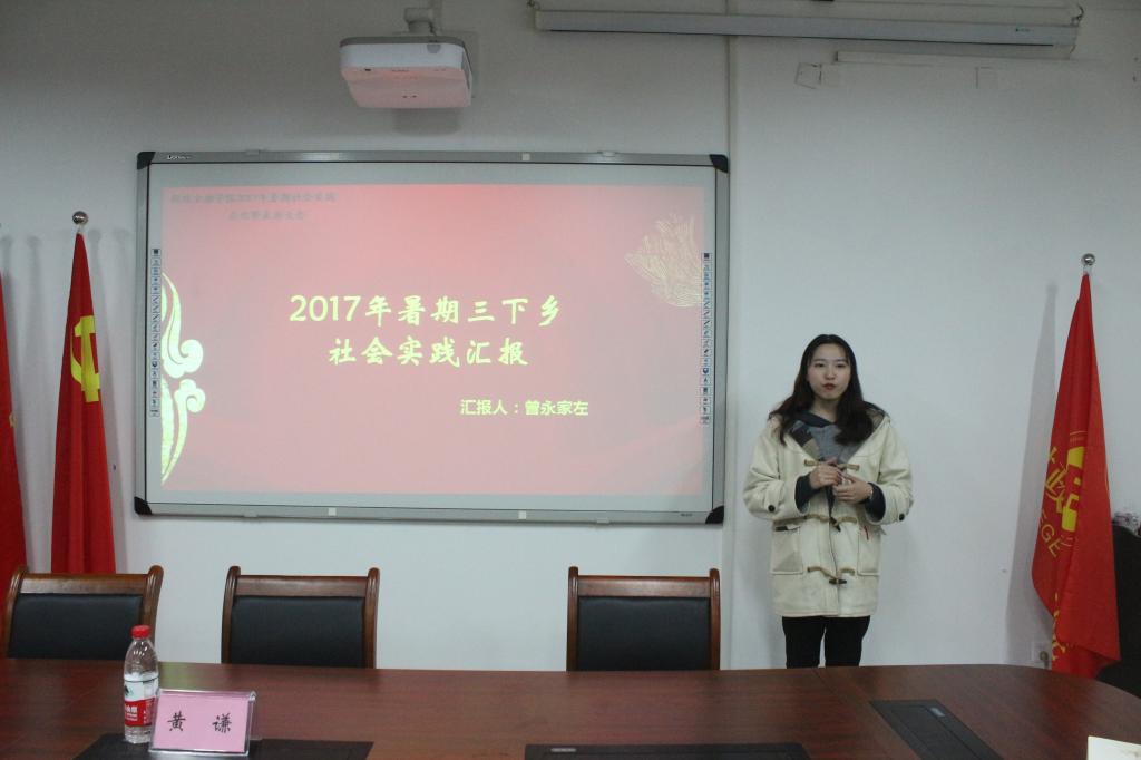 为表彰2017暑期“三下乡”活动取得的丰硕成果,鼓励同学们在实践道路上奋勇拼搏,11月30日中午,财政天游ty8线路1线路2检测中心2017暑期三下乡社会实践总结暨表彰大会在田家炳书院313会议室隆重举行,财政天游ty8线路1线路2检测中心分党委副书记黄谦、财政天游ty8线路1线路2检测中心分团委书记徐阔以及“三下乡”各团队代表参加了此次大会。