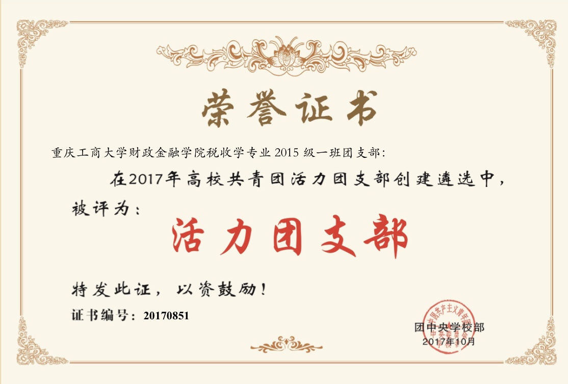 近日,团中央公布2017年全国高校“活力团支部”评选结果,经校内创建、市级遴选、网络投票、全国评审及结果公示等环节,共有1192个团支部进入了全国遴选环节,天游ty8线路官网税收学专业2015级一班团支部从全国1192个团支部中脱颖而出,喜获2017年全国高校“活力团支部”荣誉称号。