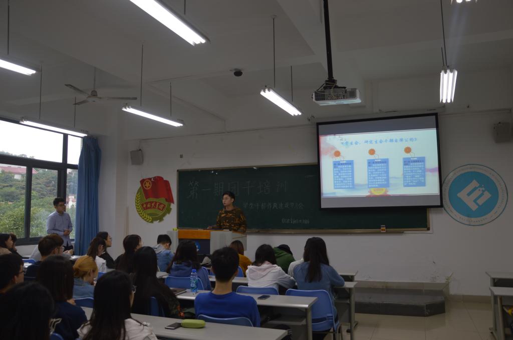 10月18日中午,天游8线路检测中心财政天游ty8线路1线路2检测中心在田家炳308教室召开了第八届“财金青马月”系列活动之团干培训。财政天游ty8线路1线路2检测中心分团委学生会主席团及部长团全体成员参加了本次培训。此次活动旨在增强学生干部的全局意识、服务意识、责任意识,加强学生干部队伍的凝聚力、战斗力,提高学生干部的整体素质,并以此促进学生干部成为学习型、务实型、创新型及自律型为一体的优秀学生干部,从而更好地服务于同学,服务于学院。