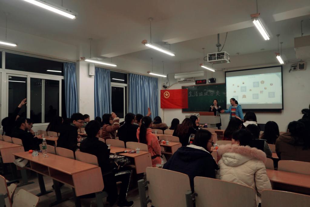 为积极响应政府部门关于生活垃圾分类措施的实行,实现垃圾资源利用,减少垃圾处置量,改善生存环境质量,这是每个公民,尤其是我们大学生应尽的义务。天游ty8线路官网2017级金融二支部、保险二支部分别在博智楼417、211教室开展了有声有色的“生活垃圾分类环保知识”主题团日活动。