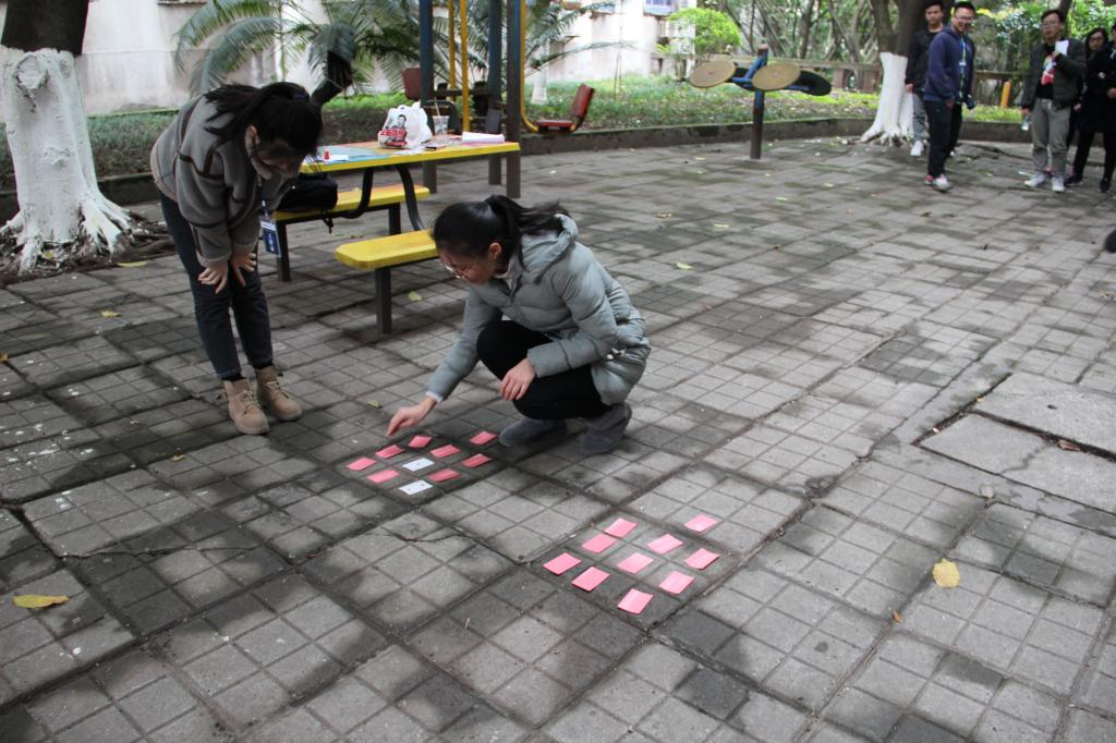 活动开始前,两个学院将队伍进行重组,分别两两结合形成共十六支队伍开展拓展训练。本次活动以集体打卡、闯关、做游戏的形式,旨在培养学生的团队精神以及增强团队合作能力并进一步增进两院之间的深厚友谊。活动涉及的打卡点扩大至整个校园,团队成员需要通过提示卡片找到打卡点并全体一起拍照,找到打卡点后再根据相对应的信息去完成“你比我猜”、“默契度测试”、“勇往直前”等小游戏。活动期间,各团队成员激情参与,在不同的活动项目中,队员们密切配合,齐心合力,闯过一个又一个难关。比赛的过程也充满了欢声笑语,每个人都乐在其中,加油呐喊声更是不绝于耳,处处可以感受到团队合作的力量。