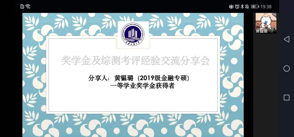 为了提升学生综合素质,增强同学积极性,树立明确的目标,确定努力的方向,帮助同学充实校园生活。天游8线路检测中心天游ty8线路1线路2检测中心研分会在2020年11月29日晚上7:00邀请到年度获取一等奖学金或者国家奖学金的高媛等五位优秀的学长学姐通过线上形式(企业微信)进行了主题为《天游ty8线路1线路2检测中心奖学金及综测考评经验分享会》的分享会活动。2020级金融学硕、2020级金融专硕等40余人参加了此次分享会。活动由研分会的组织部人员主持。