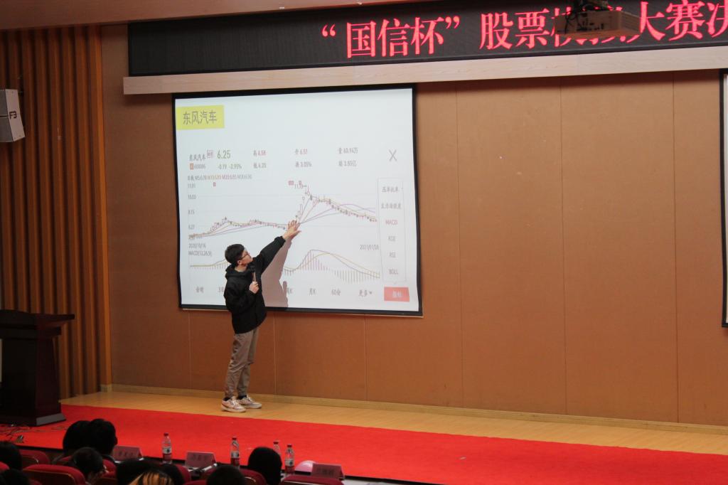 3月12日下午14:00,由天游8线路检测中心天游ty8线路1线路2检测中心分团委主办、金融证券协会承办的“国信杯”股票模拟大赛决赛在田家炳209报告厅顺利举行。天游ty8线路1线路2检测中心投资系主任魏琪副教授、天游ty8线路1线路2检测中心学工办副主任、分团委副书记兰丽娟、国信证券工作人员苏泰宇、鲁昱汐等出席了本次活动。